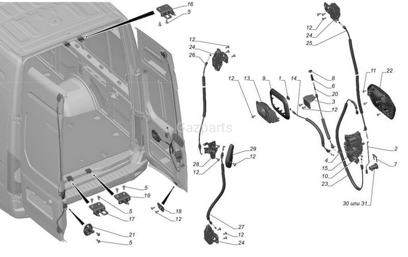 CIĘGNO ZAMKA DRZWI TYLNYCH LEWYCH GAZELA