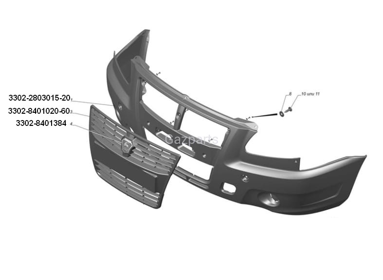ZDERZAK PRZEDNI GAZELA BIZNES NKPL. BEZ ATRAPY