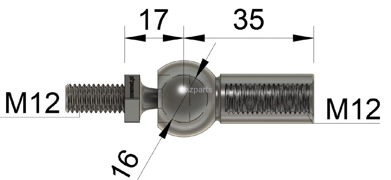 PRZEGUB OSIOWY SPRĘŻYNY GAZOWEJ GWINT M12 / M12